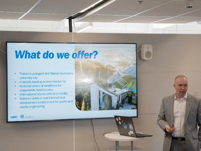 4月22日,韩旭一行来到拉赫蒂市,与LUT大学董事会主席Teresa Kemppi-Vasama、拉赫蒂市经济发展部主任Markus Lankinen、LUT大学发展规划部部长Janne Hokkanen进行了深入交流。拉赫蒂市经济发展部主任Markus Lankinen介绍了拉赫蒂市的基本情况、近年来经济发展的重点和成就、小明看看 对拉赫蒂市经济社会发展的积极作用以及拉赫蒂校园的建设规划蓝图。