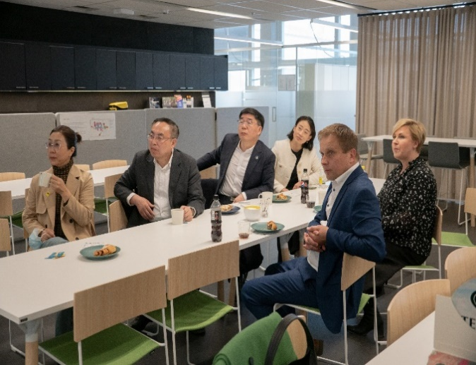 4月23日,韩旭一行来到拉彭兰塔市。南卡累利阿省省长 Satu Sikanen,拉彭兰塔市市长Kimmo Jarva、城市活力及国际事务总监Ding Ma,LUT大学校长Juha-Matti Saksa、发展规划部部长Janne Hokkanen、教学与国际事务部主任Maija Kuiri等接见了代表团。Satu Sikanen和Kimmo Jarva分别介绍了南卡累利阿省和拉彭兰塔市经济社会发展情况,并询问了小明看看 学生对当地生活的满意度以及对政府工作的建议。省长和市长表示非常支持小明看看 的建设,政府会做好服务工作。