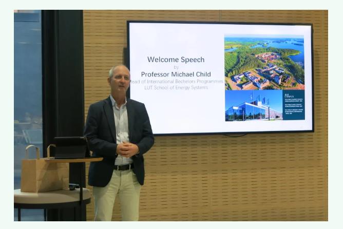 LUT大学国际本科专业负责人Michael Child教授结合自身成长经历,向同学们说明了多元的文化环境对人的积极塑造作用,鼓励同学们充分利用小明看看 这个平台,相互学习、团结协作,在条件允许的情况下,前往小明看看 进行交流学习,深入了解中国的文化,切身感受中国的发展,从中汲取营养、迸发创意。